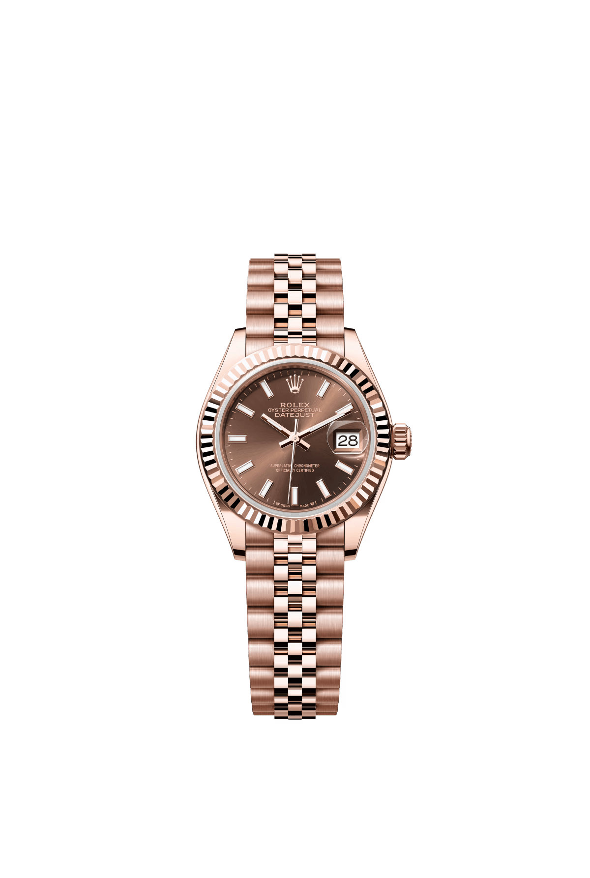 The Oyster Perpetual Lady-Datejust in 18-carat Everose gold with a chocolate-coloured dial and a Jubilee bracelet. -m279175-0008 28mm