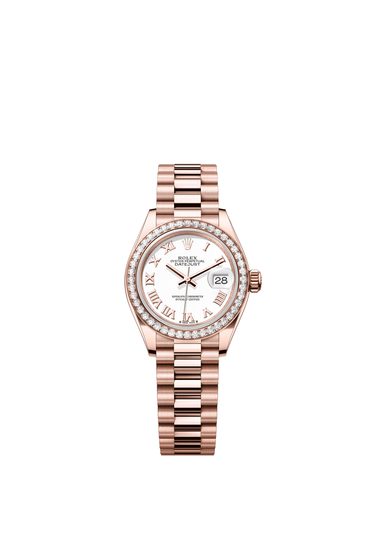 The Oyster Perpetual Lady-Datejust in 18-carat Everose gold with a white dial and President bracelet. -m279135rbr-0023 28mm
