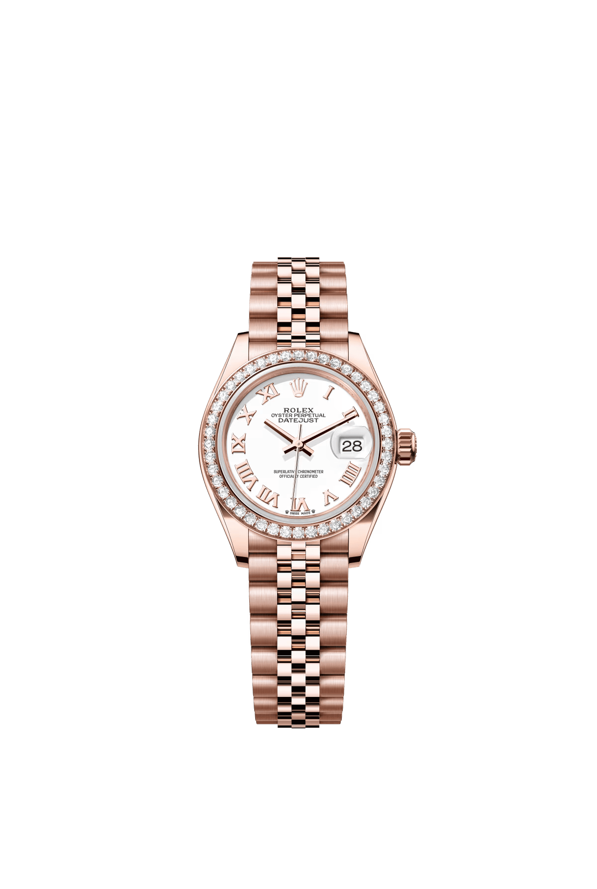 The Oyster Perpetual Lady-Datejust in 18 ct Everose gold with a white dial and Jubilee bracelet. -m279135rbr-0024 28mm