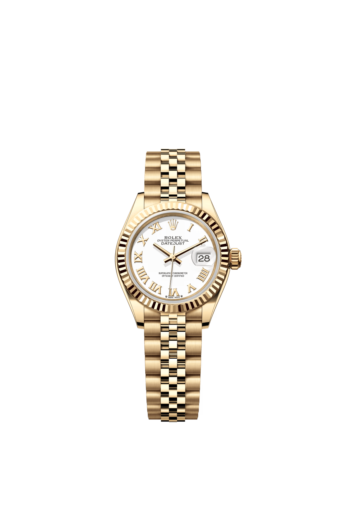 The Oyster Perpetual Lady-Datejust in 18 ct yellow gold with a white dial and Jubilee bracelet. -m279178-0030 28mm