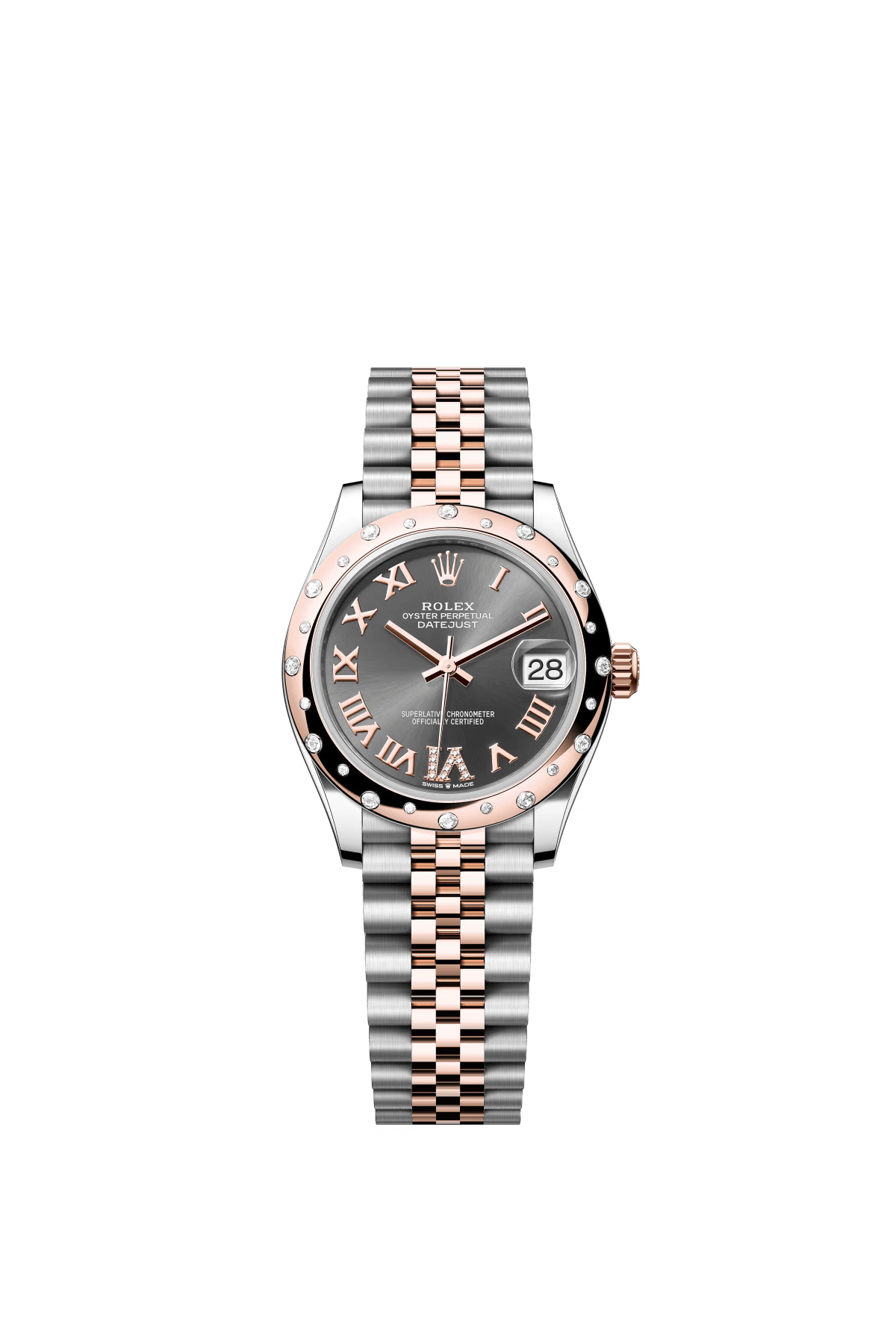 The Oyster Perpetual Datejust 31 in Everose gold and Oystersteel with a grey dial set with diamond plates and a Jubilee bracelet. -m278341rbr-0030