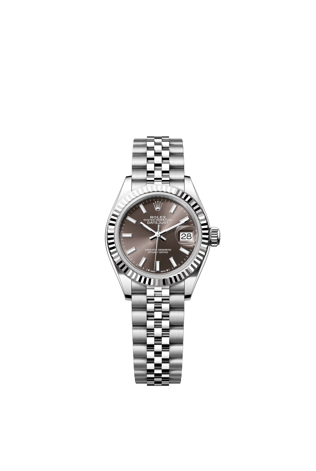 The Oyster Perpetual Lady-Datejust in white gold and Oystersteel with a dark grey dial and a Jubilee bracelet. -m279174-0011 28mm