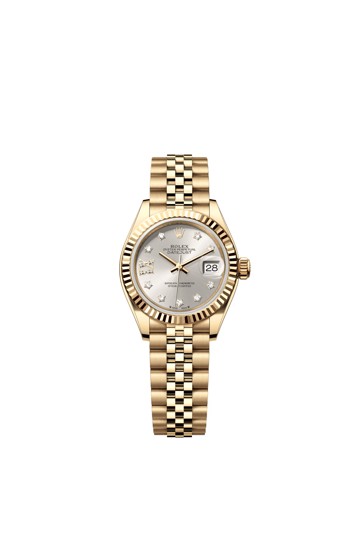 The Oyster Perpetual Lady-Datejust in 18K yellow gold with a silver diamond-set dial and a Jubilee bracelet. -m279178-0004 28mm
