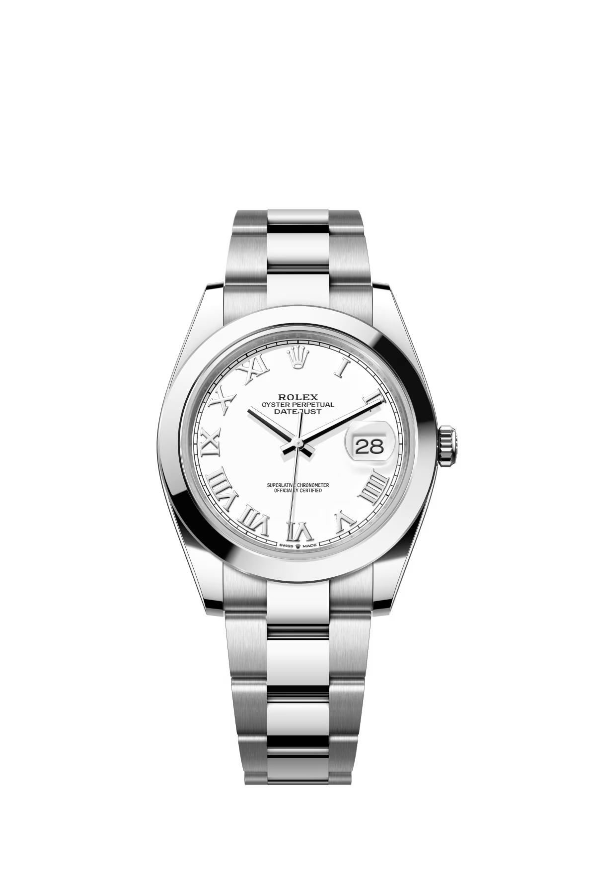 The Oyster Perpetual Datejust 41 is made in Oyster steel with a white dial and an Oyster bracelet. -m126300-0015