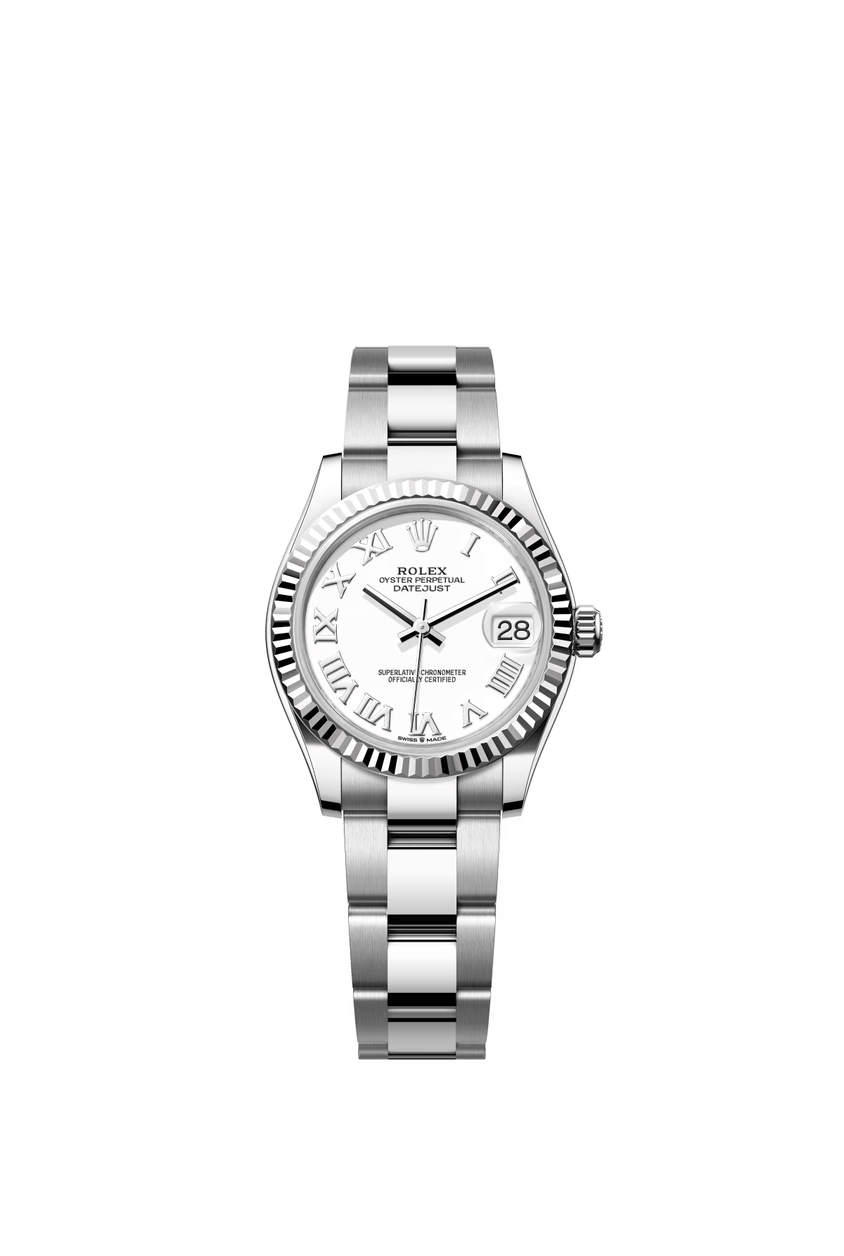 The Oyster Perpetual Datejust 31 is available in white gold and Oystersteel with a white dial and Oyster bracelet. -m278274-0009