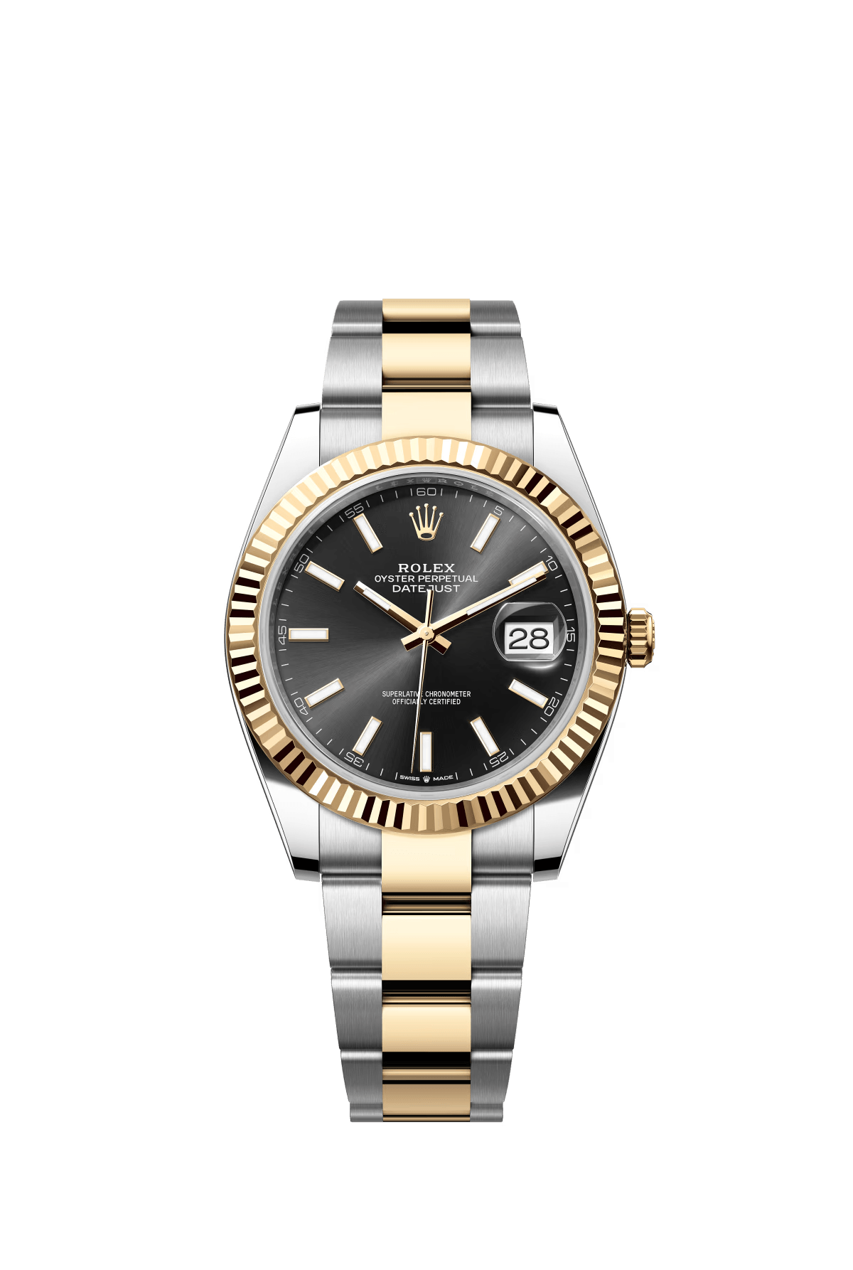 The Oyster Perpetual Datejust 41 is available in yellow gold and Oystersteel with a glossy black dial and an Oyster bracelet. -m126333-0013