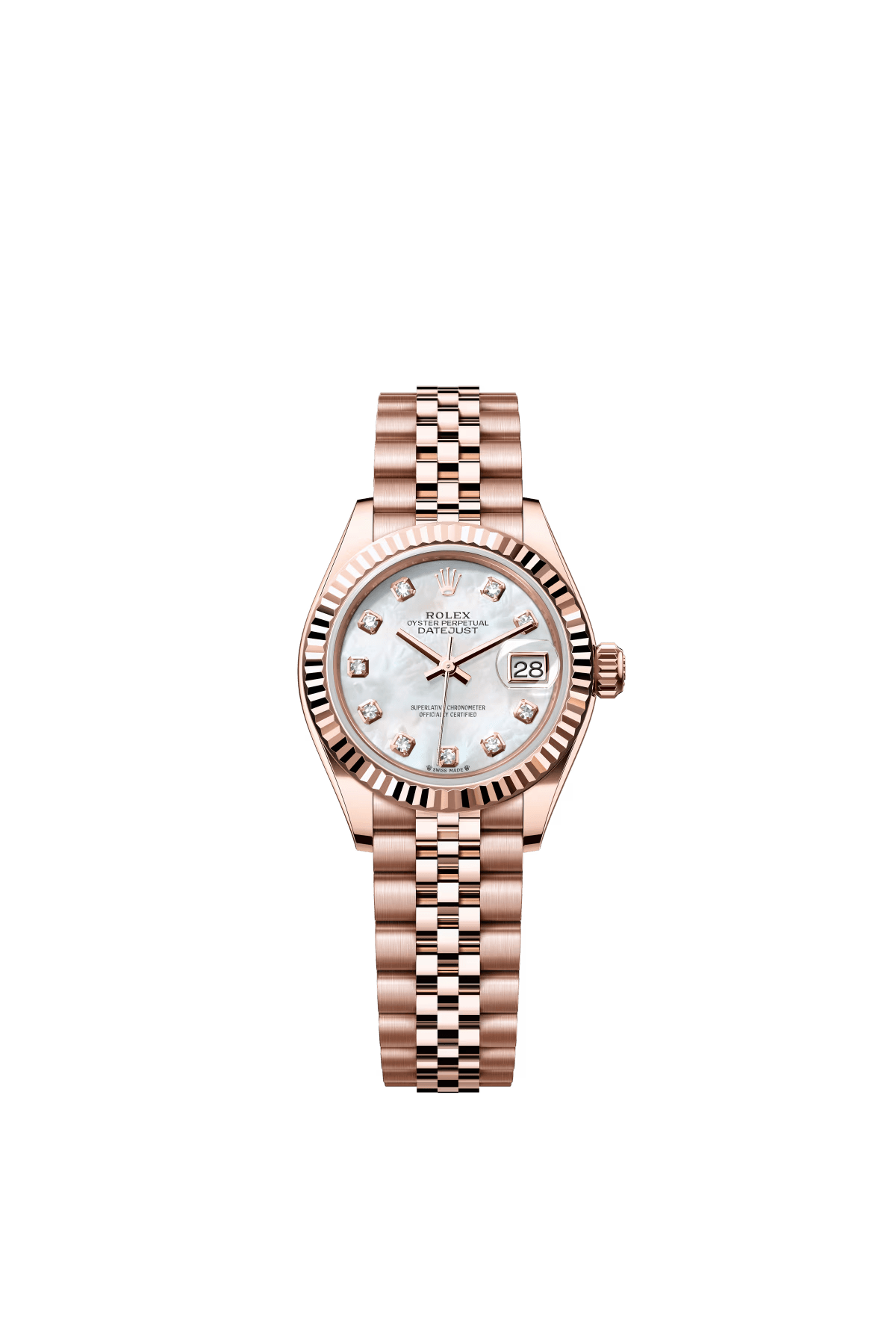 The Oyster Perpetual Lady-Datejust is available in Everose gold and Oystersteel. with a rose gold dial and an Oyster bracelet. -m279381rbr-0024 28mm
