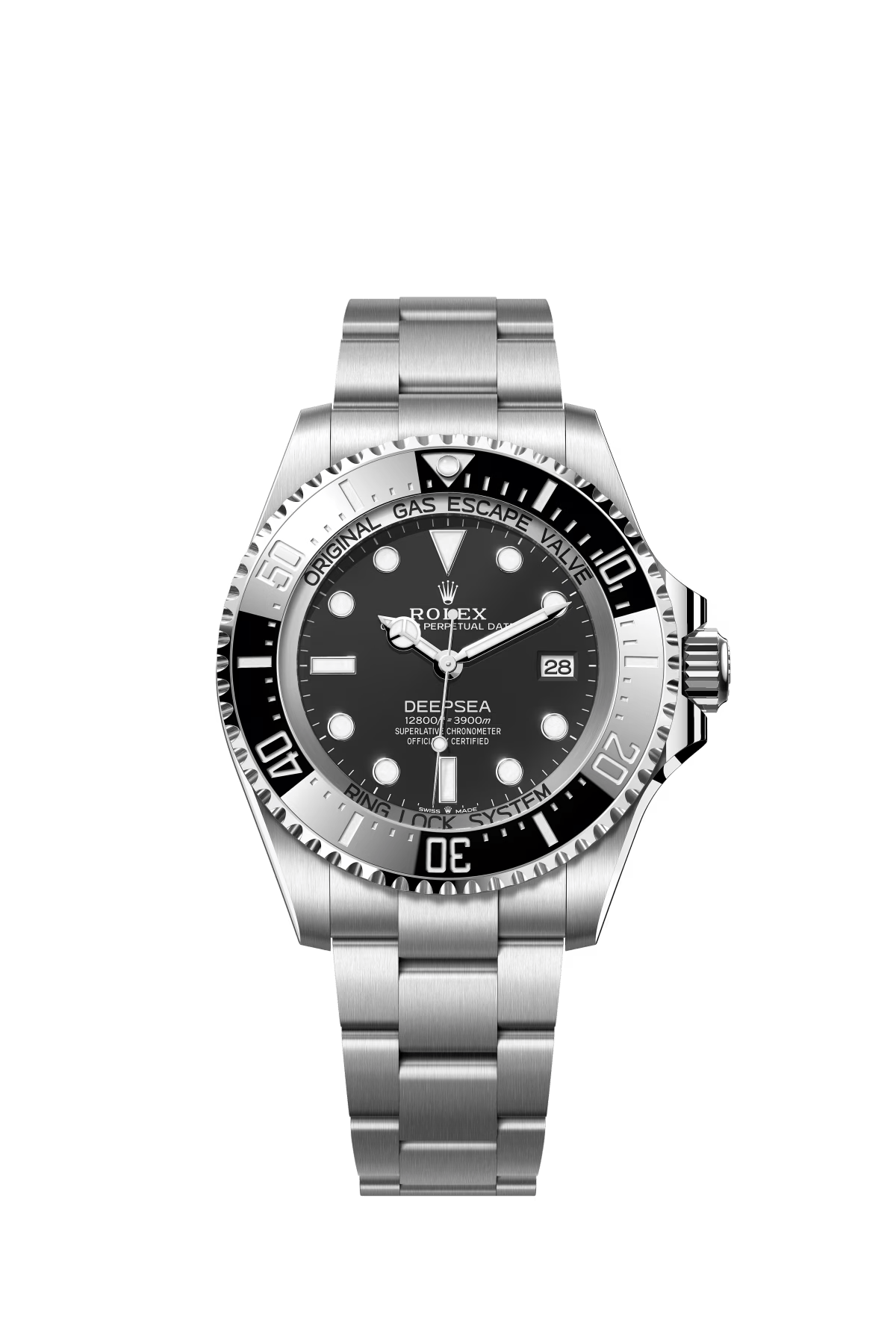 The Oyster Perpetual Rolex Deep Diver is made of Oyster steel with a black Cerachrom insert in ceramic and an Oyster bracelet. -m136660-0005 44mm