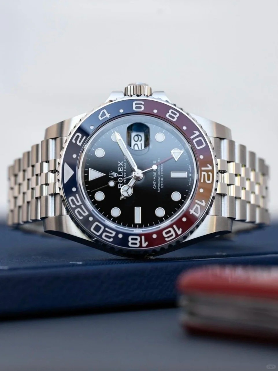 The Oyster Perpetual GMT-Master II is available in Oyster steel with a black dial and a Jubilee bracelet. -m126710blro-0001 40mm