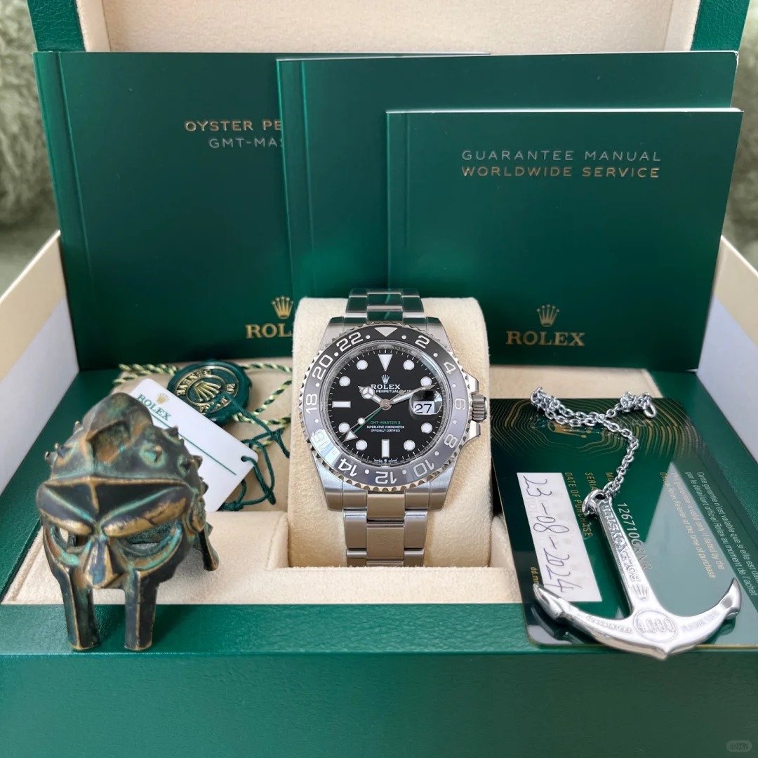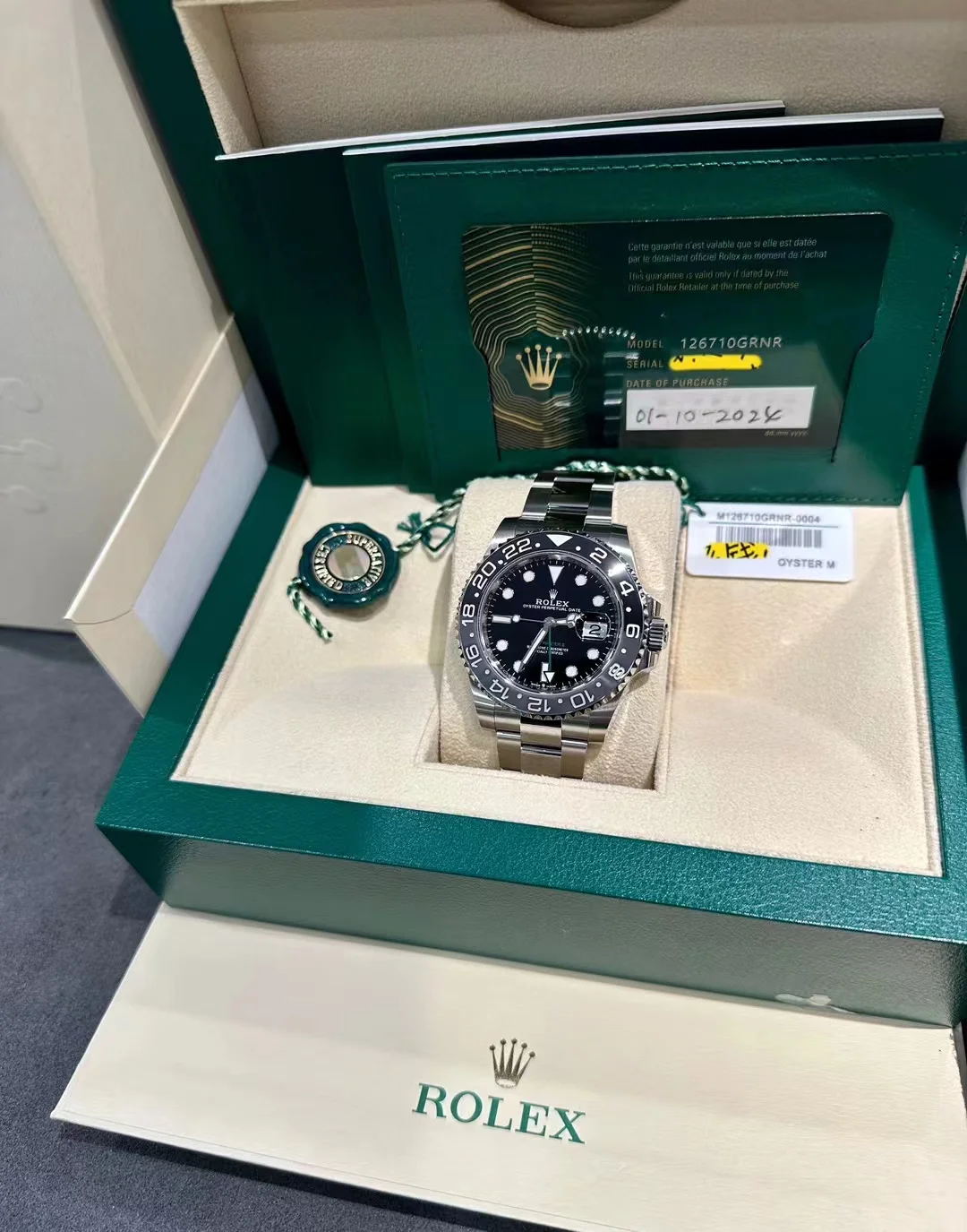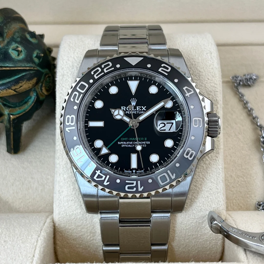 The Oyster Perpetual GMT-Master II is made of Oyster steel with a black dial and an Oyster bracelet. -m126710grnr-0004 40mm