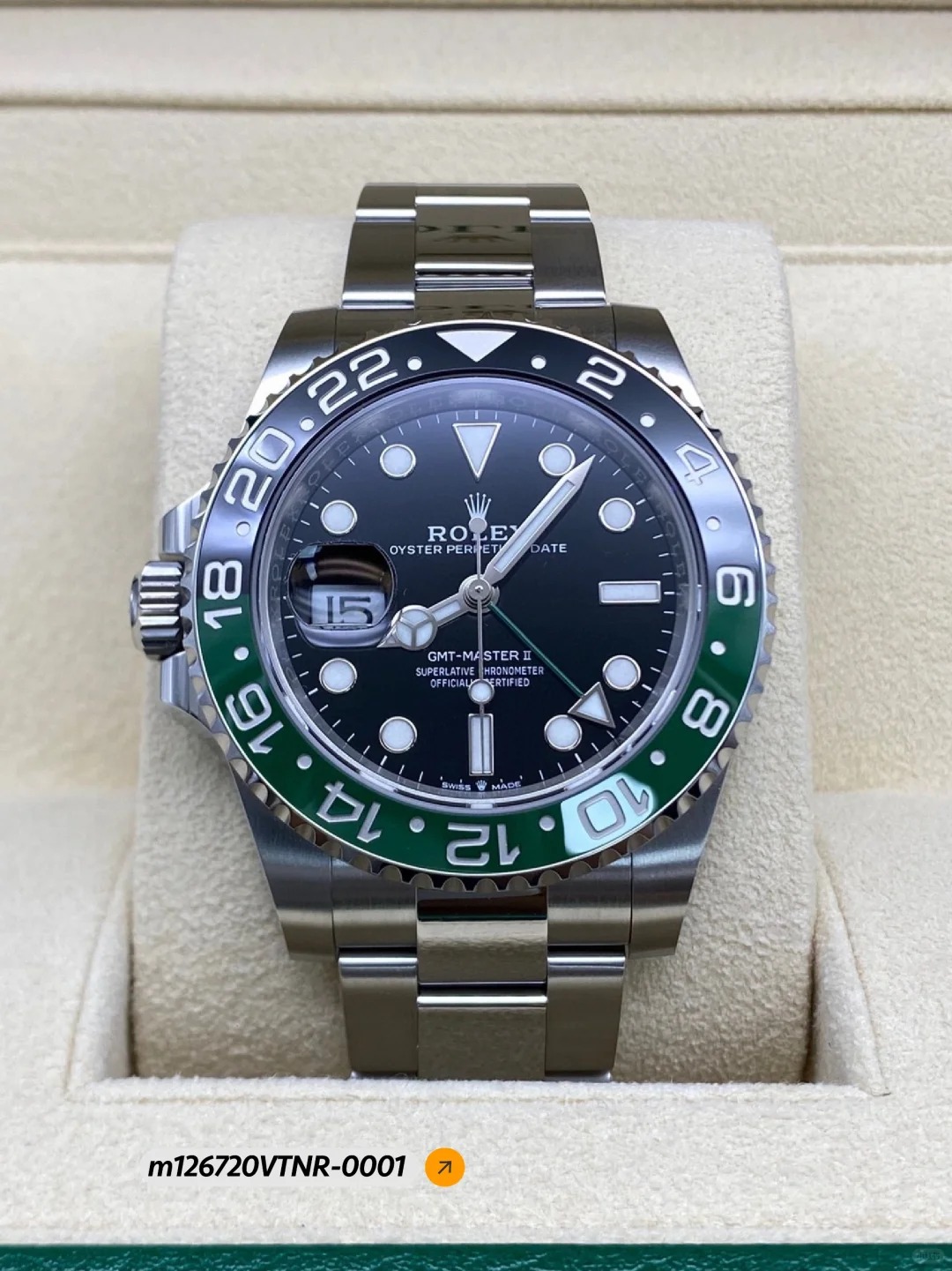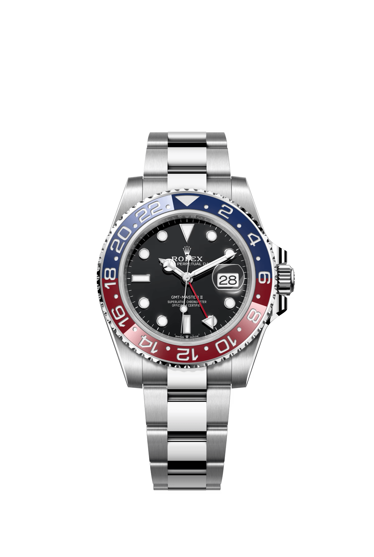 The Oyster Perpetual GMT-Master II is made of Oyster steel with a black dial and an Oyster bracelet. -m126720vtnr-0001 40mm