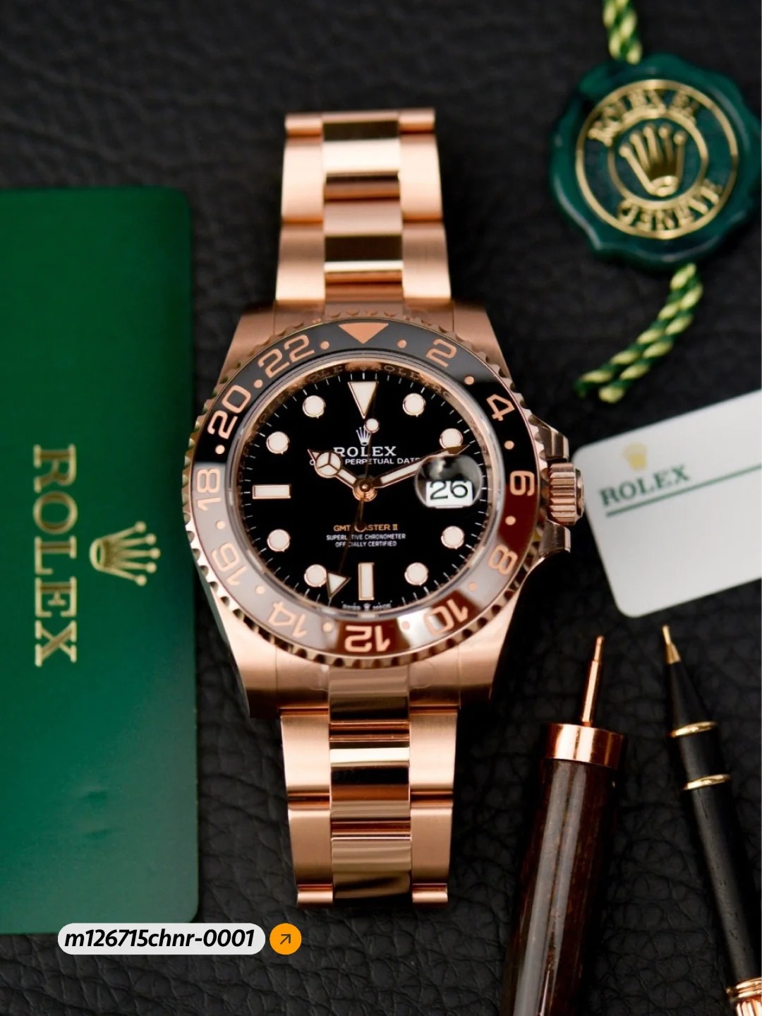 The Oyster Perpetual GMT-Master II in 18K Everose gold with a black dial and Oyster bracelet. -m126715chnr-0001 40mm