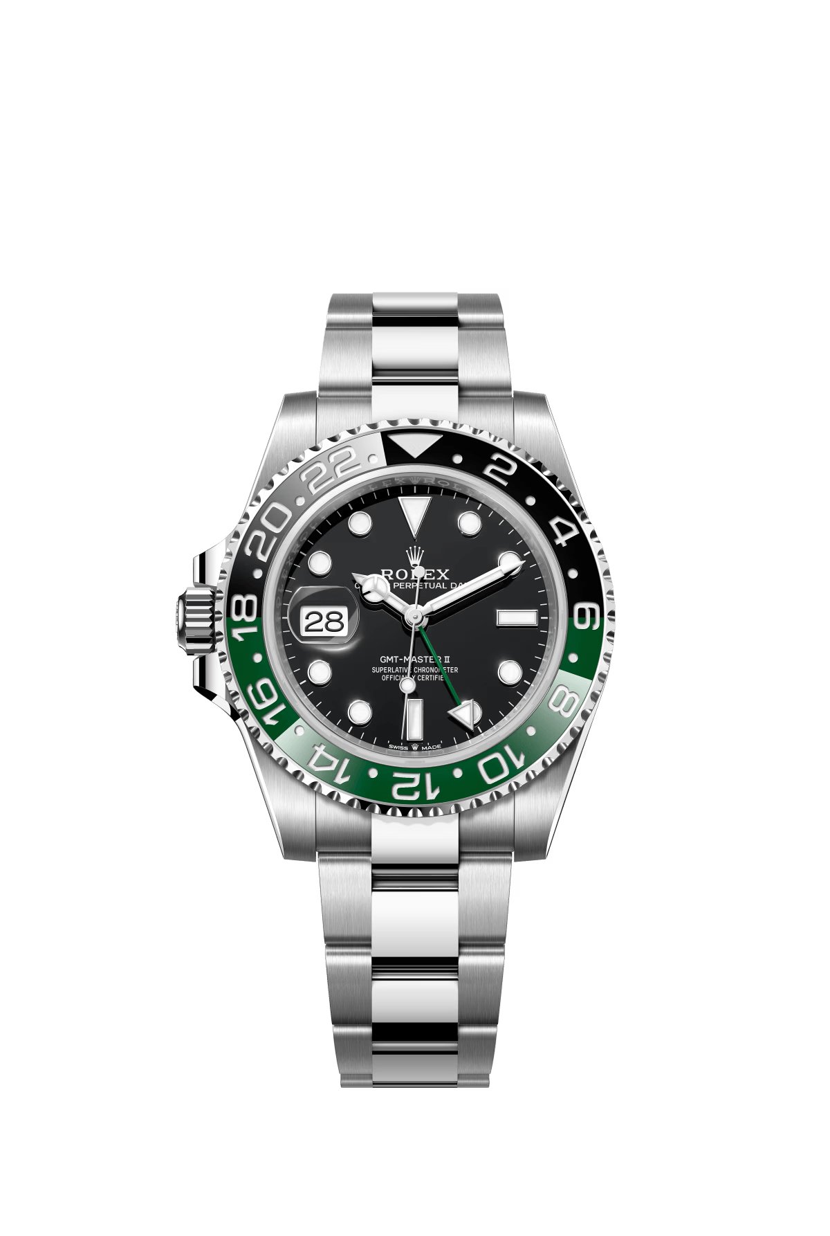 The Oyster Perpetual GMT-Master II is made of Oyster steel with a black dial and an Oyster bracelet. -m126710grnr-0004 40mm