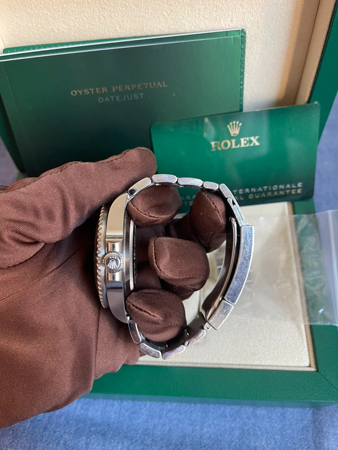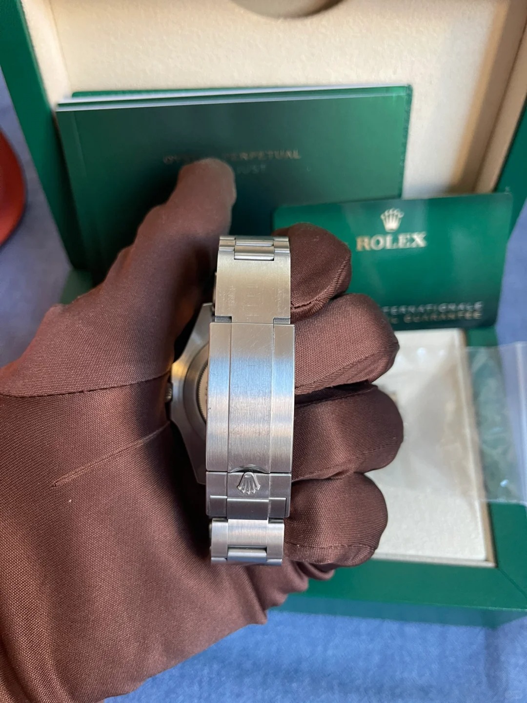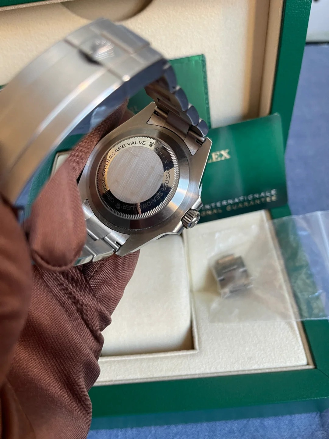 The watch is unworn and comes complete with full set of original accessories. such as watch box. warranty card dated recently. booklets and manuals.