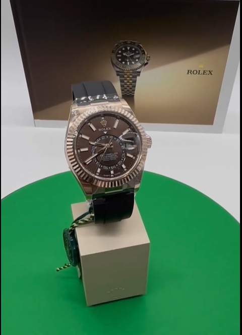 The Oyster Perpetual Sky-Dweller in 18-carat Everose gold with a chocolate-coloured dial and an Oysterflex bracelet. -m336235-0002 42mm