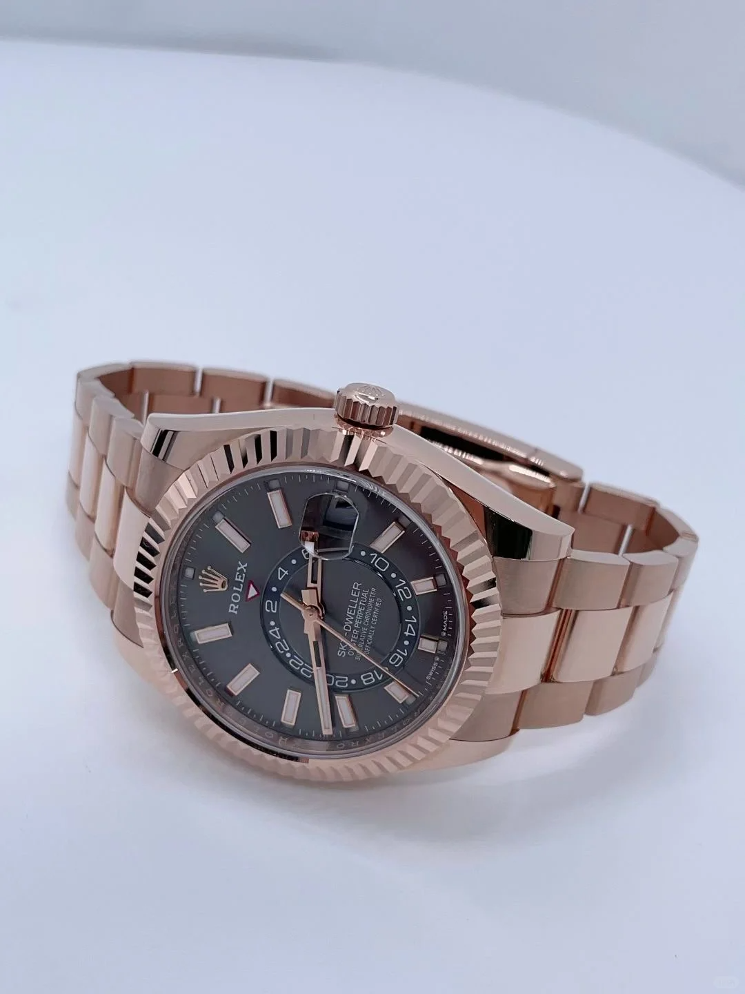 The Oyster Perpetual Sky-Dweller in 18 ct Everose gold with a slate grey dial and an Oyster bracelet. -m336935-0004 42mm