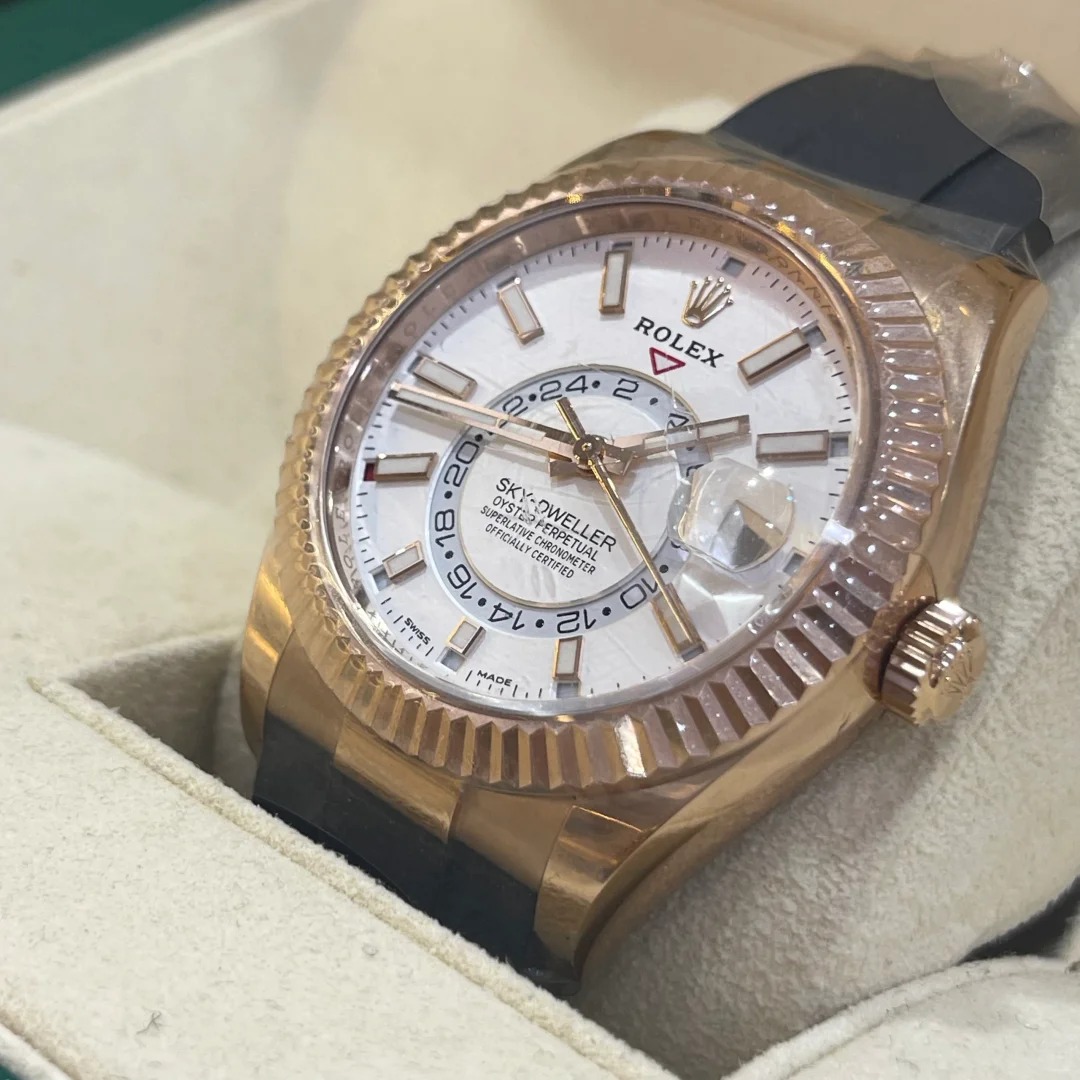 The Oyster Perpetual Sky-Dweller in 18 ct Everose gold with a mellow white dial and an Oysterflex bracelet. -m336235-0003 42mm