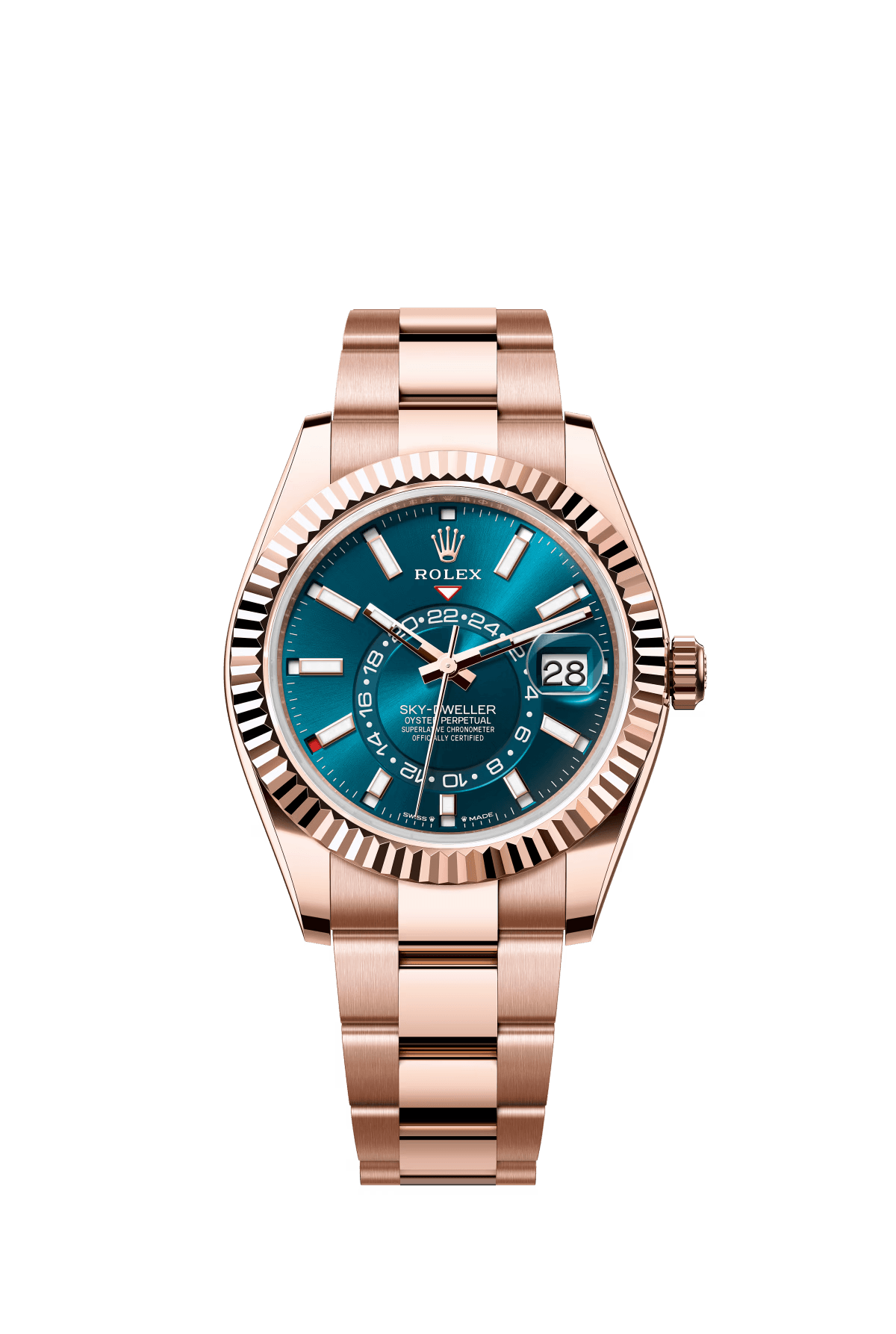 The Oyster Perpetual Sky-Dweller in 18-carat Everose gold with a turquoise dial and Oyster bracelet. -m336935-0001 42mm