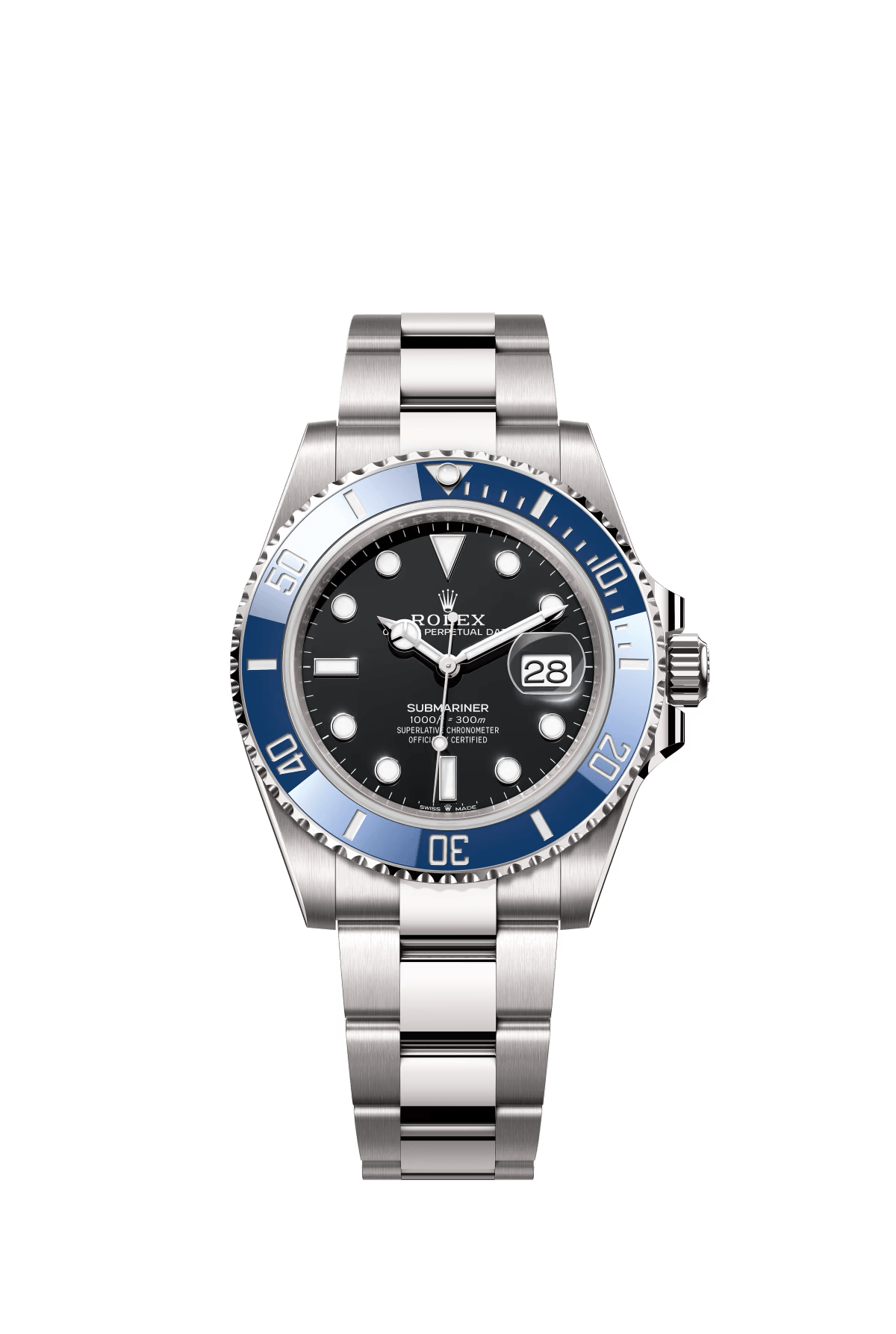 The Oyster Perpetual Submariner Date in 18K white gold with a blue Cerachrom insert in ceramic. a black dial and oversized luminescent hour markers. -m126619lb-0003 41mm