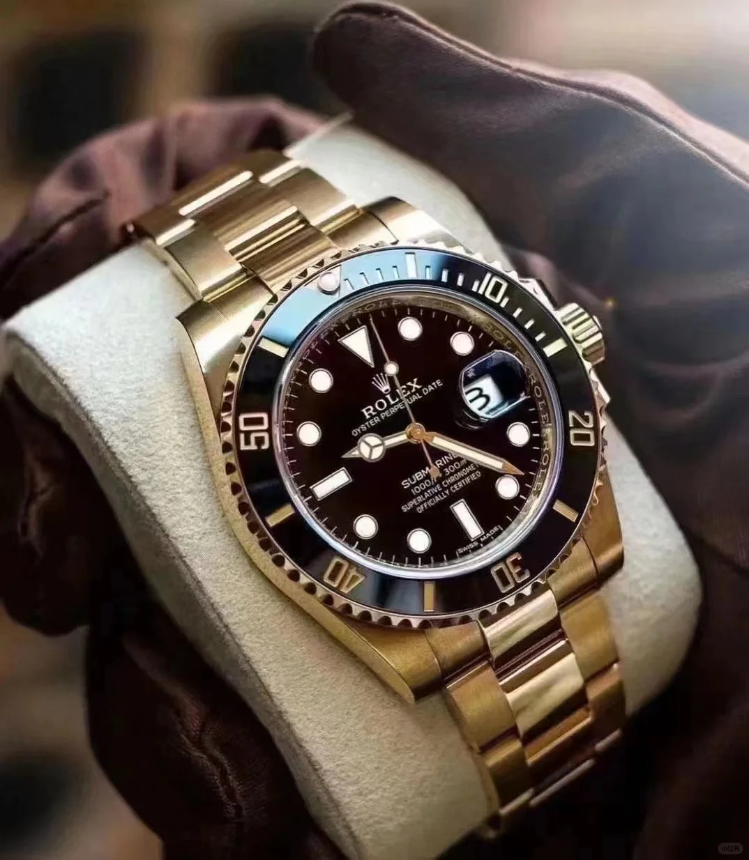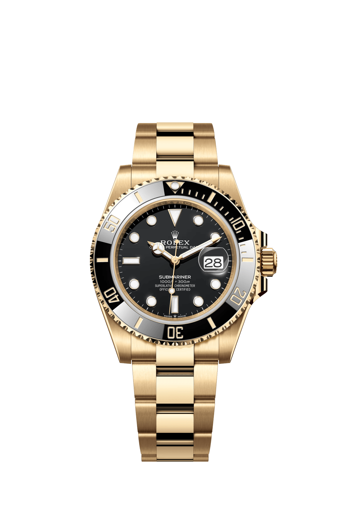 The Oyster Perpetual Submariner Date in 18 ct yellow gold with black Cerachrom insert in ceramic. black dial and oversized luminescent hour markers. -m126618ln-0002 41mm