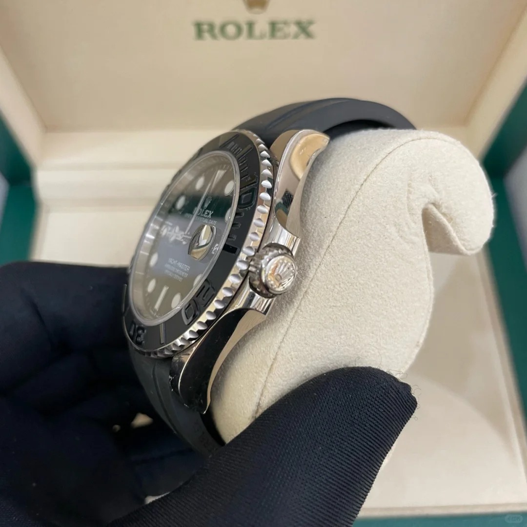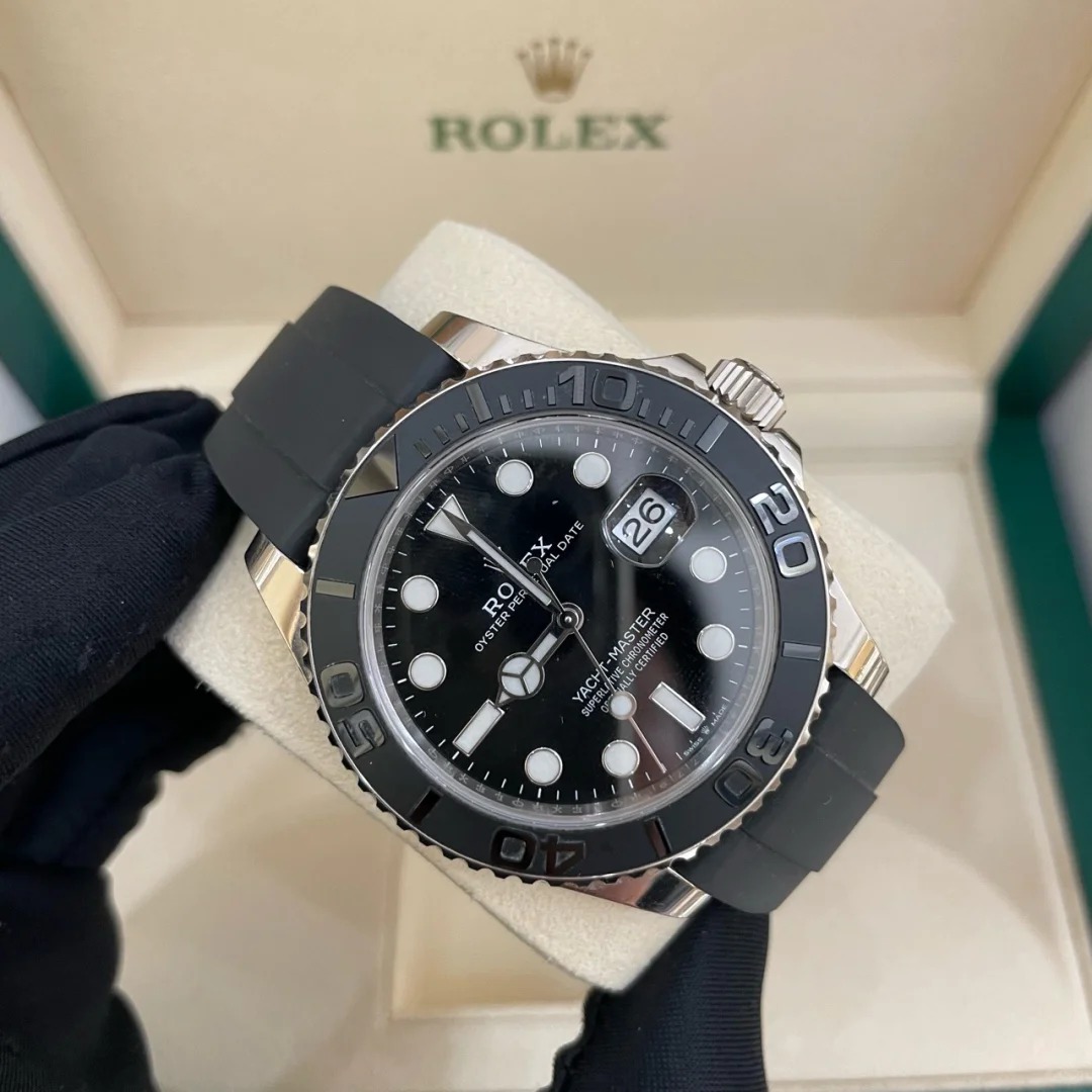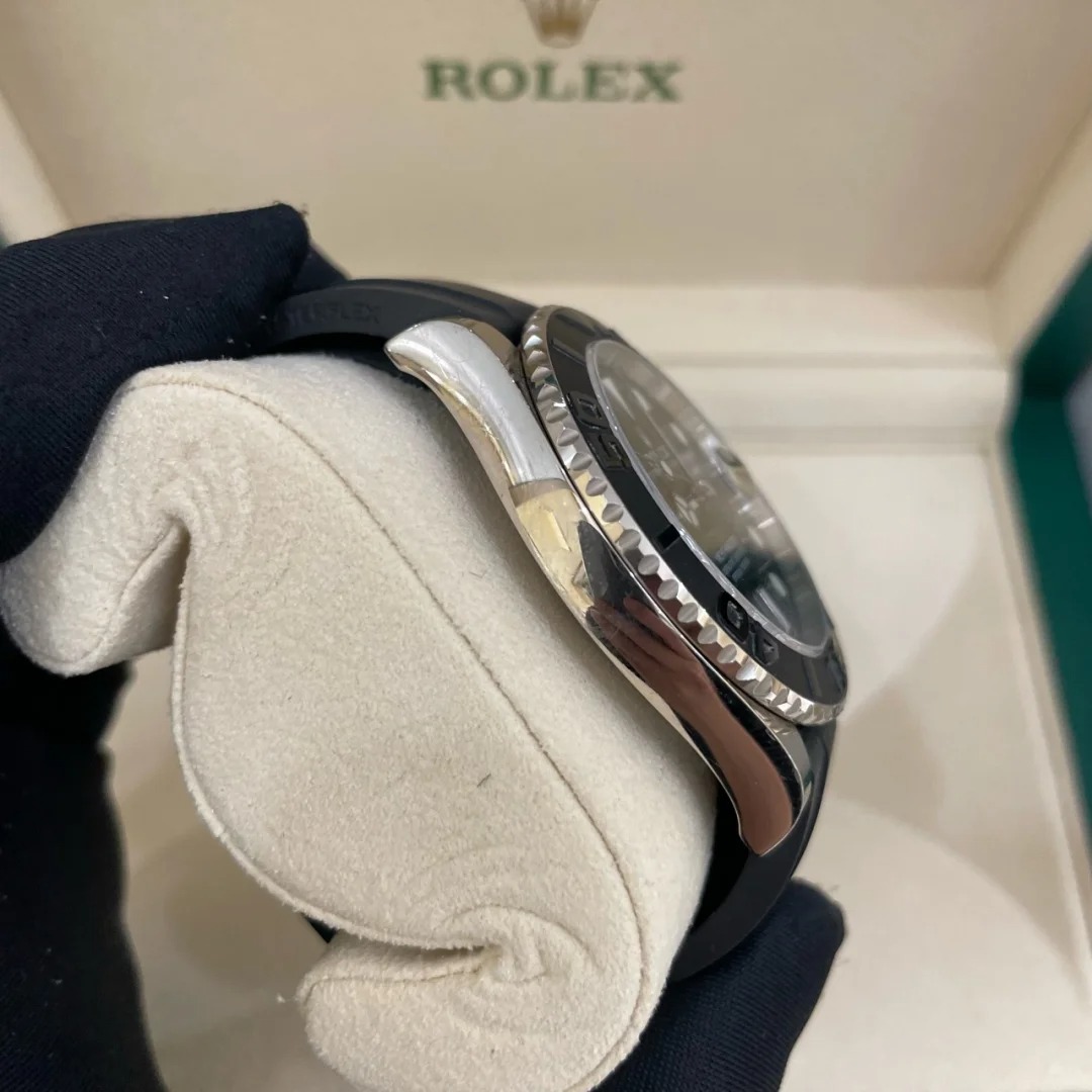 The Oyster Perpetual Yacht-Master 42 is available in 18 ct white gold with a black dial and an Oysterflex bracelet. -m226659-0002