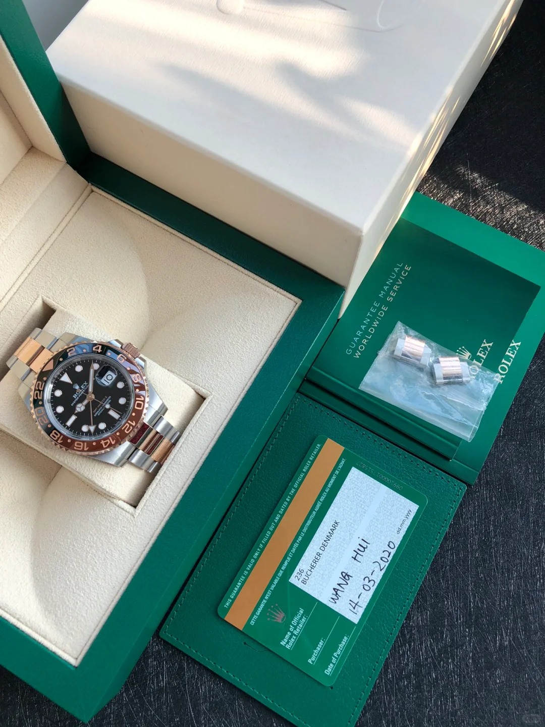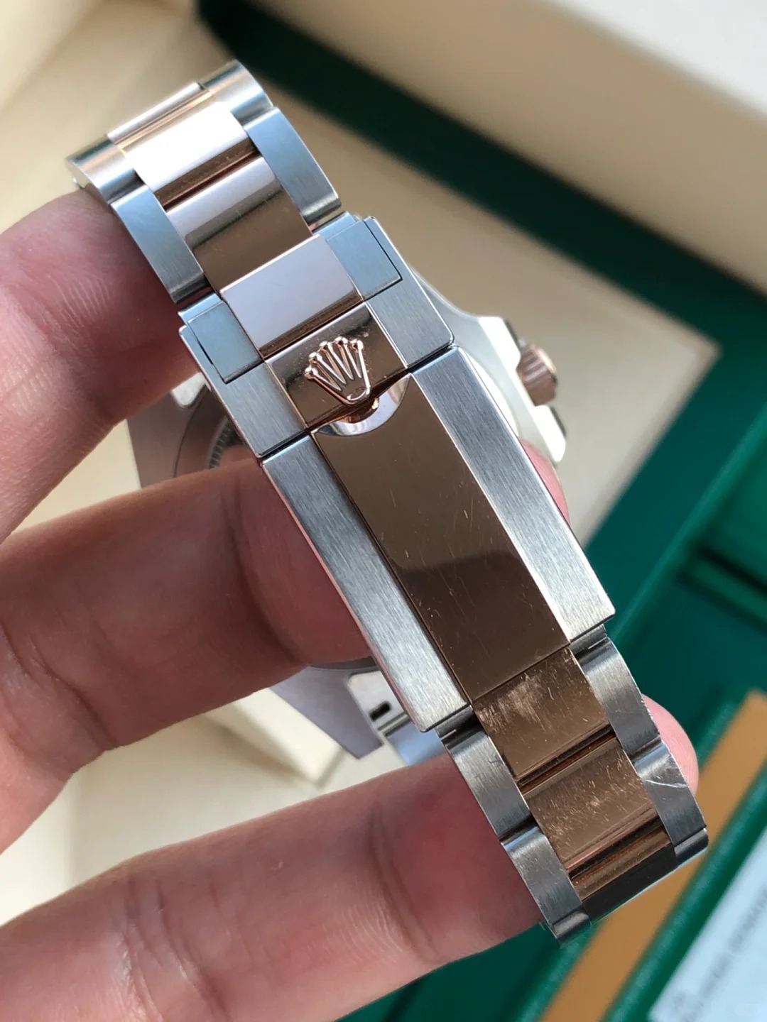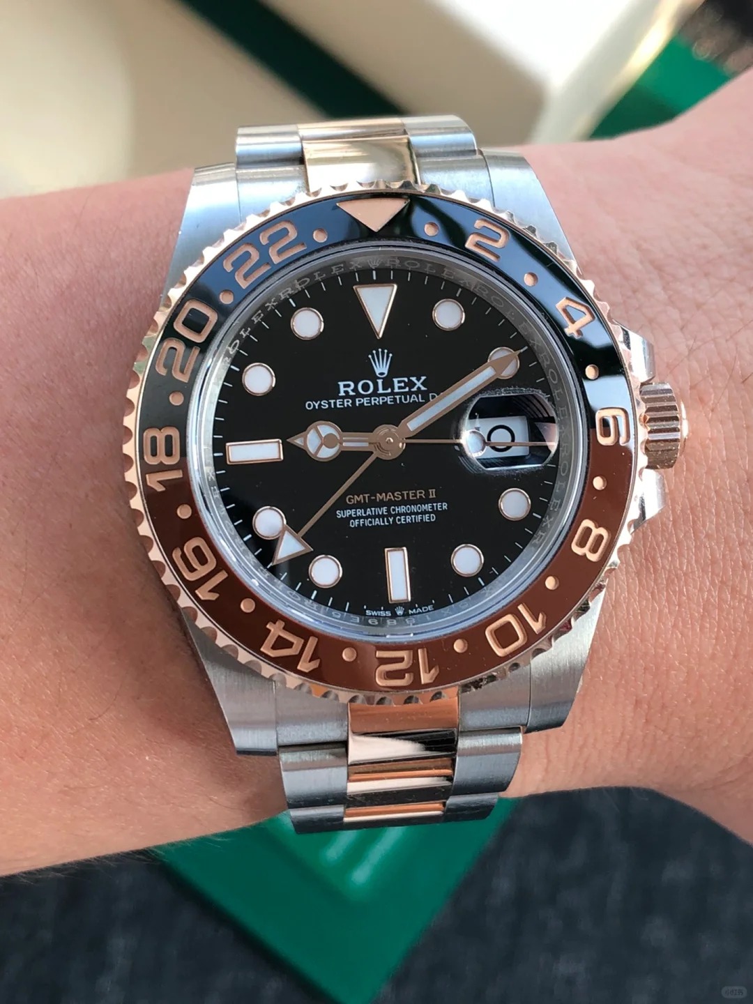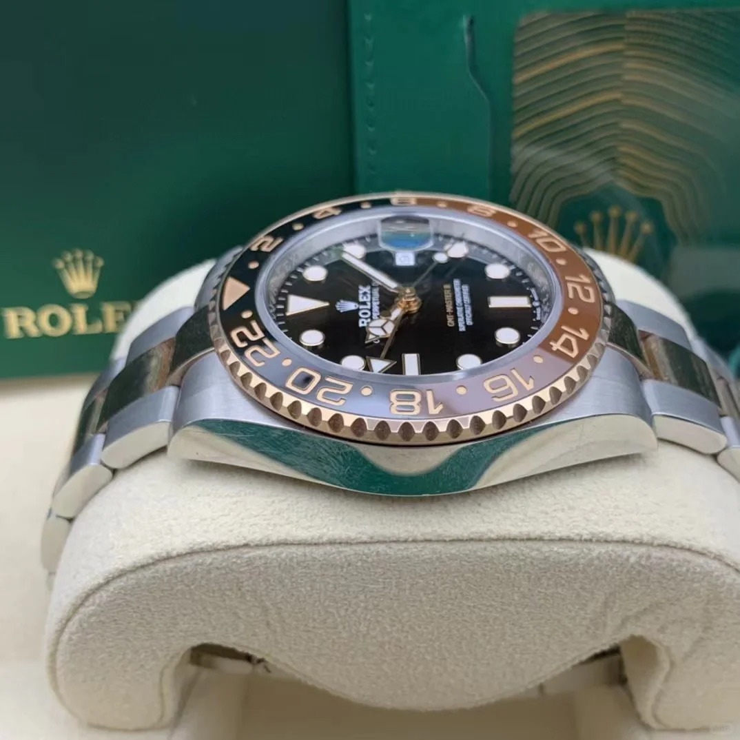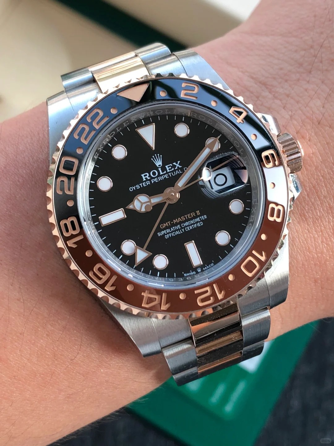 • The Oyster Perpetual GMT-Master II is available in Everose gold and Oyster steel with a black dial and Oyster bracelet. -m126711chnr-0002 40mm
