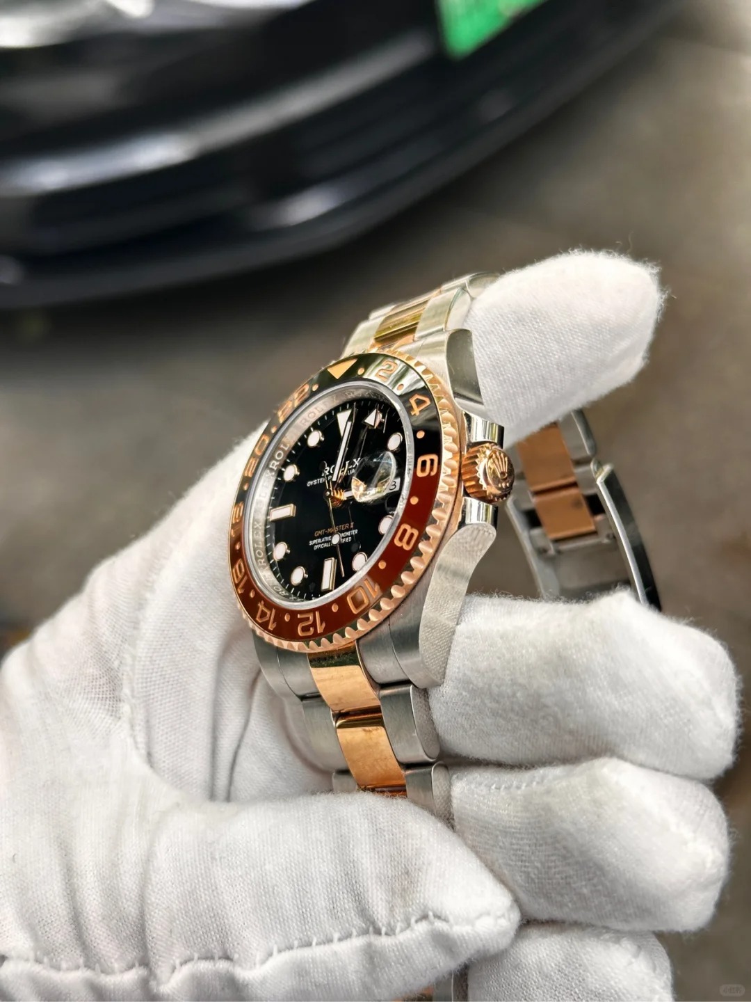 The Oyster Perpetual GMT-Master II is available in Everose gold and Oyster steel with a black dial and Oyster bracelet. -m126711chnr-0002 40mm